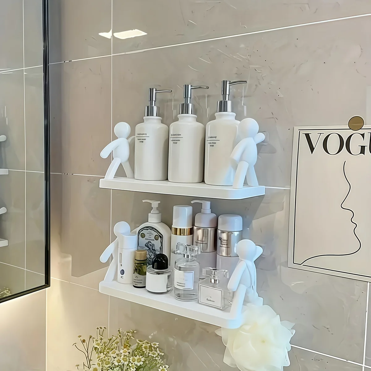 1Pc Self-adhesive Bathroom Shelf Shower Towel Storage Rack Plastic Cosmetic Toilet Organizer Home Decor Kitchen