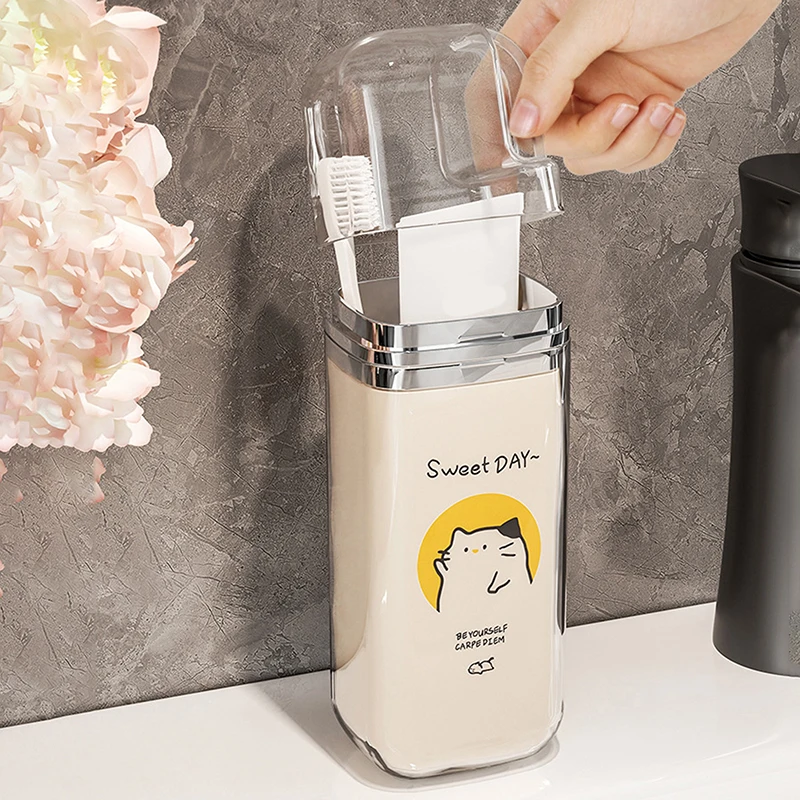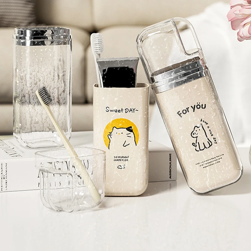 3 IN1 Cartoon Cute Toothbrush Cup Travel Toothbrush Holder Simple Portable Mouthwash Cup For Business Trip Home Bathroom Camping
