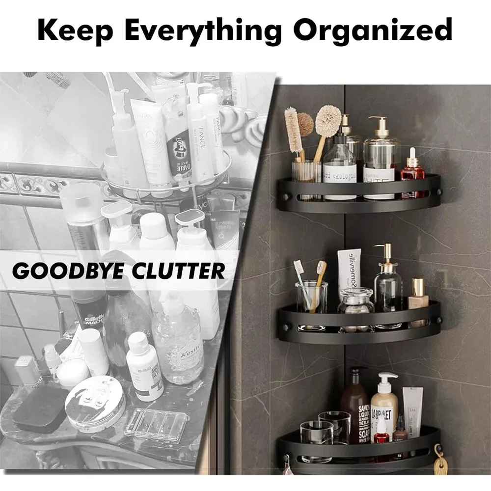 【Good Load Bearing】 Each shower shelf can load up to 15 KG, great for storing shampoo, shower gel, soap, hair conditioner etc. Up to 3 packs of shower corner shelves are designed to keep your bathroom or kitchen organized.
