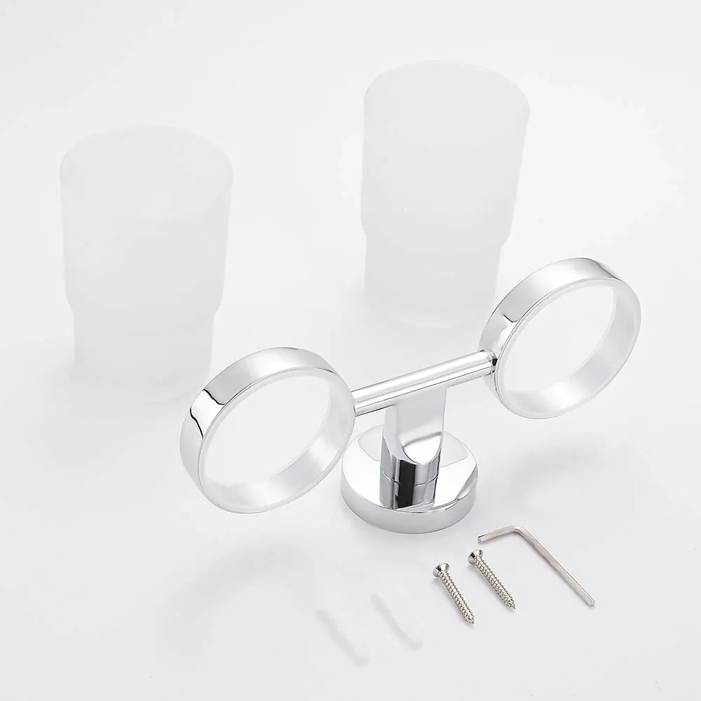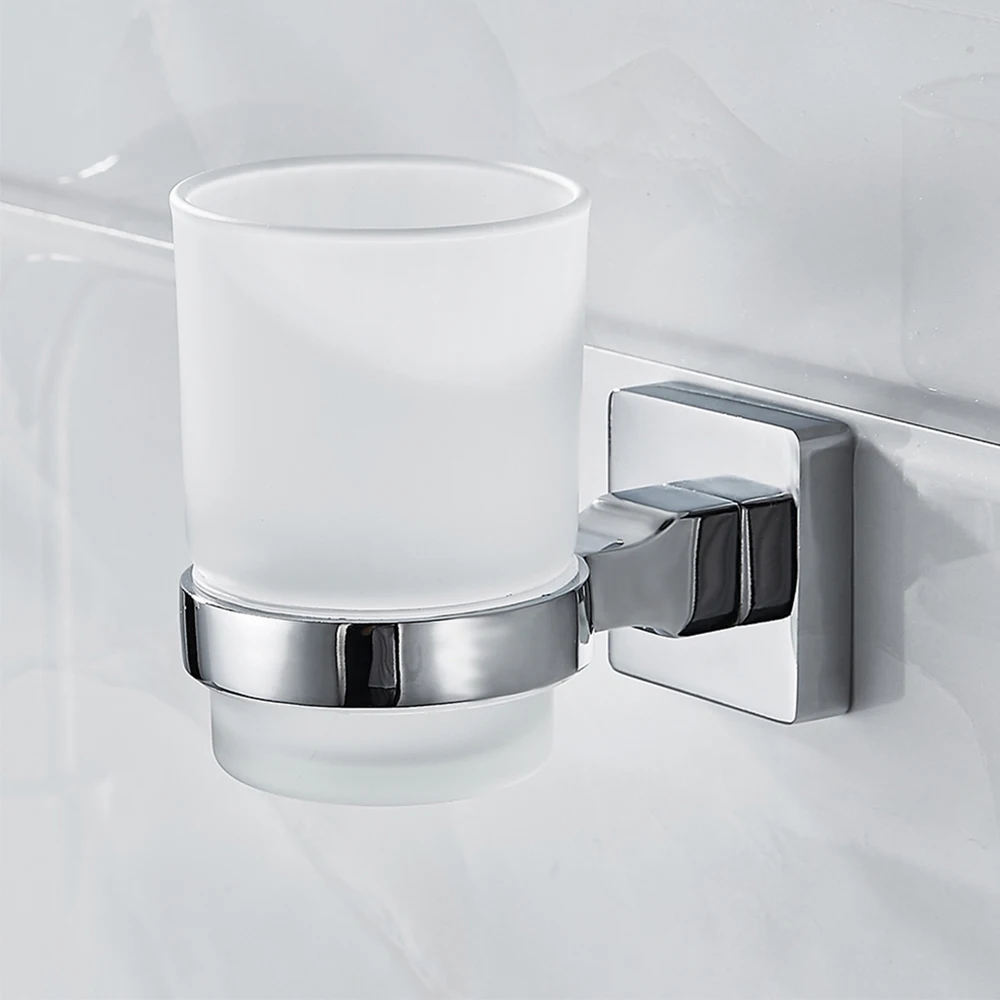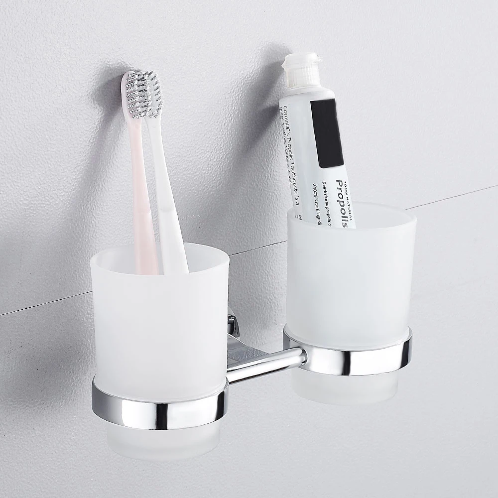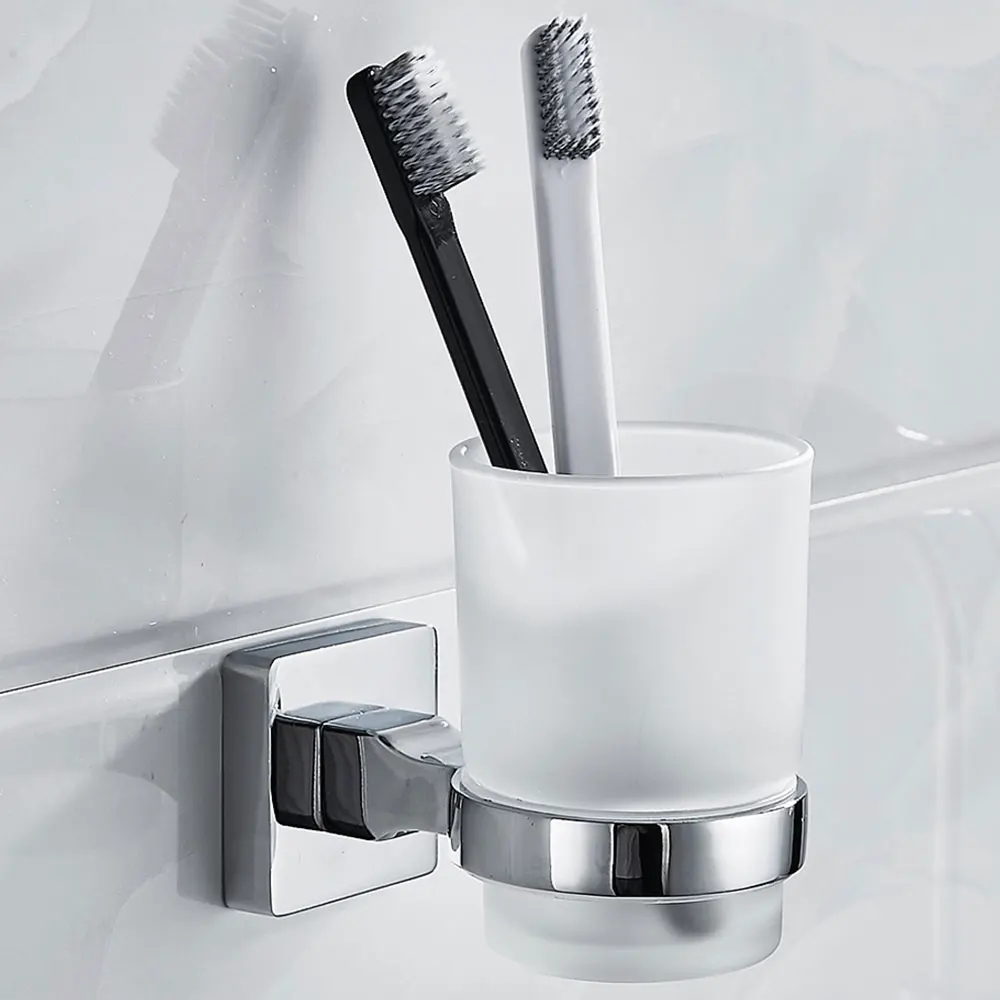 Bathroom Modern Wall-Mounted Toothbrush Holder Glass Cup Tumbler Frame Bathroom Storage Organizer Tooth Brush Cup Tools Washroom