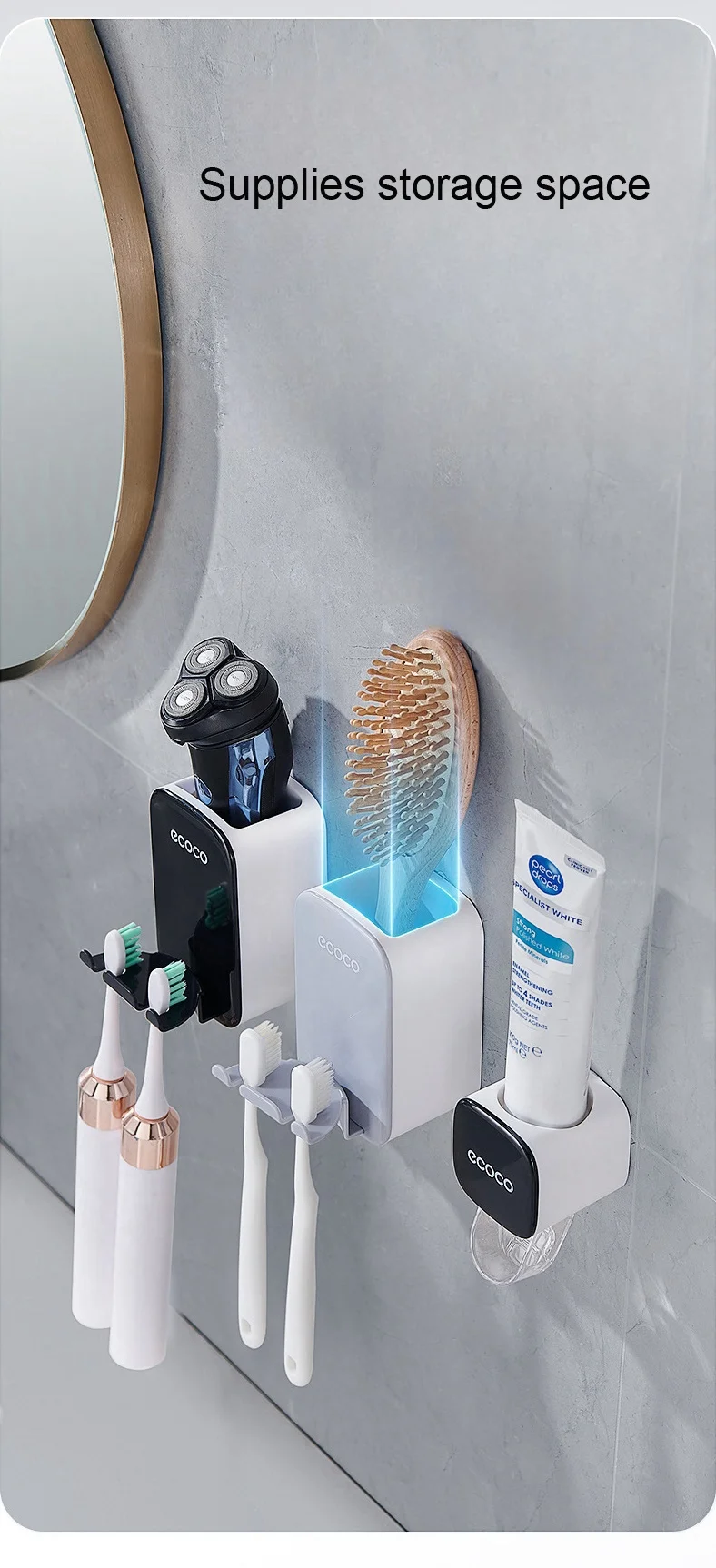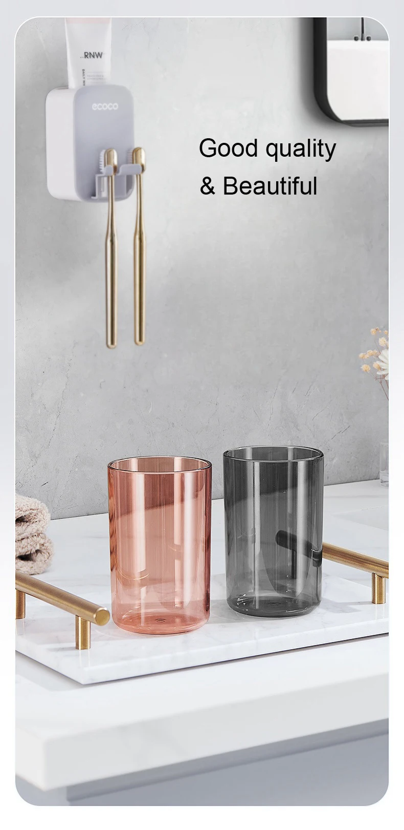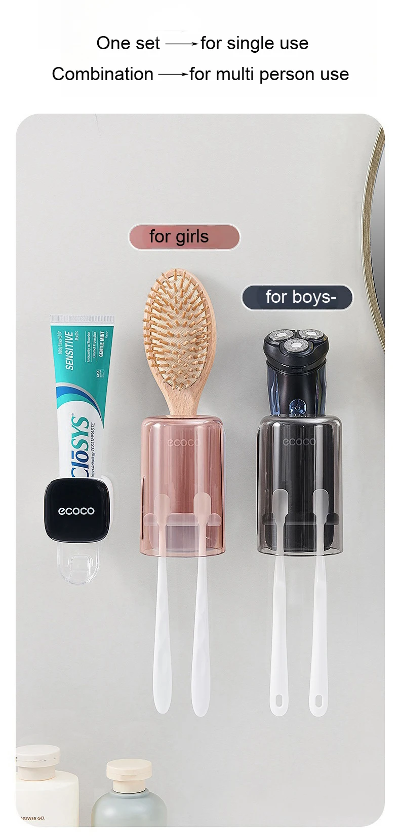 ECOCO Toothbrush Holder and Cup Set Wall Mount Bathroom Accessory Punch Free Mouthwash Holder for Single Home School Student