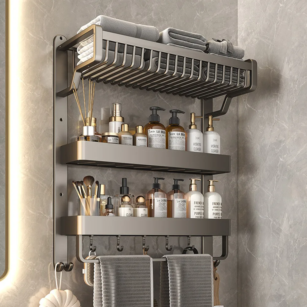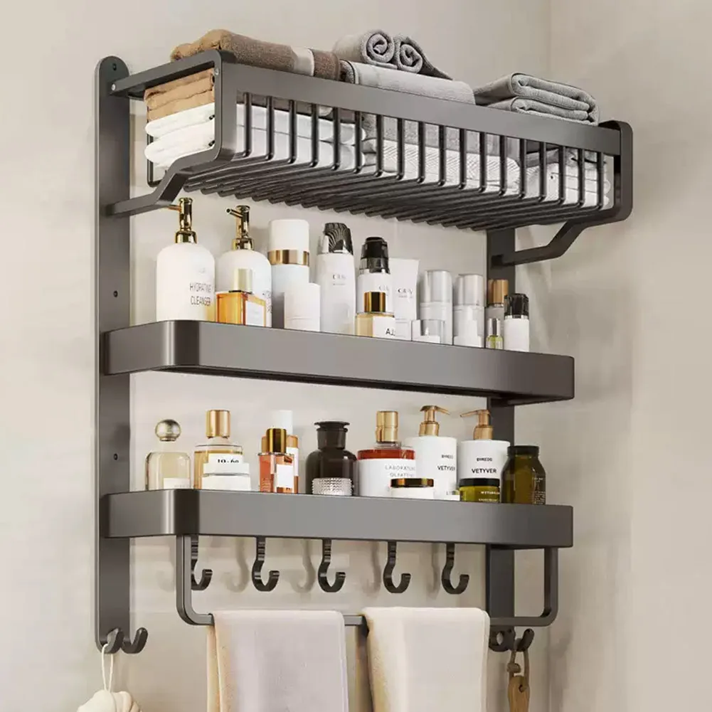 Multi-layer bathroom wall shelf with towel bar and hooks, kitchen spice storage rack toilet shelf