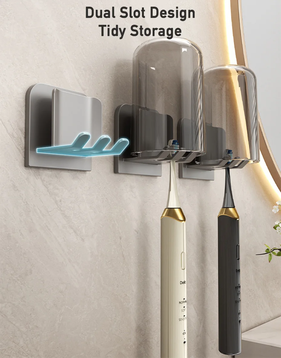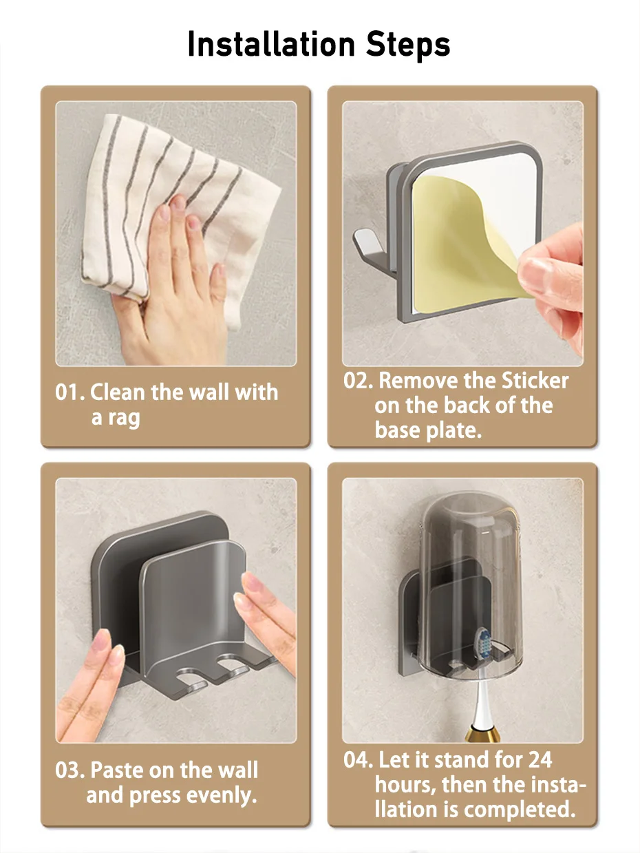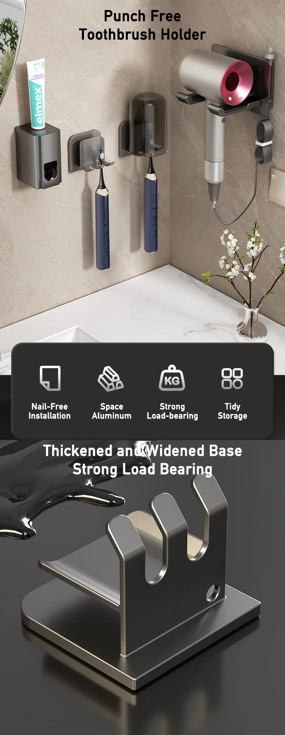 Punch Free Aluminum Wall Mount Toothbrush Holder and Cup Electric Tooth Brush Hold Bathroom Organizer Rack Toothbrushes Storage