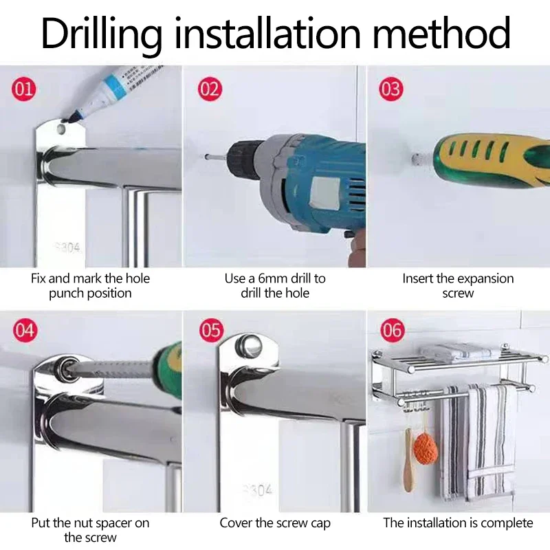 Stainless Steel Bath Towel Rack Perforation-free Hotel Hotel Bathroom Rack Towel Rack Towel Bar Bathroom Shelves