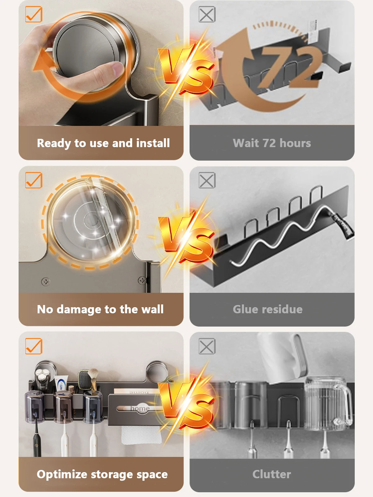 Suction Cup Toothbrush Holder With Paper Towel Holder Bathroom Shelf Mouthwash Cup Toothbrush Holder