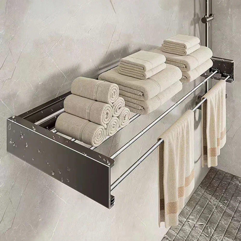 With a clever use of space, our towel drying rack makes the living environment cleaner. Its layered design allows full use of space and effectively avoids moisture and bacterial growth by ensuring ventilation; when not in use, it can be neatly folded against the wall, without taking up extra space. In addition, crafted from premium aluminium alloy, it features corrosion-resistant and rust-proof, ensuring that it is more durable and easy to maintain. It can also serve as a shelf to store other household supplies such as bathrobes, bathroom accessories, kitchen supplies and so on. Therefore, it can be widely used in every corner of your home, making it an ideal choice for efficient use of space in modern home life. This rack not only improves the living experience, but also shows the intelligence and convenience of modern design.