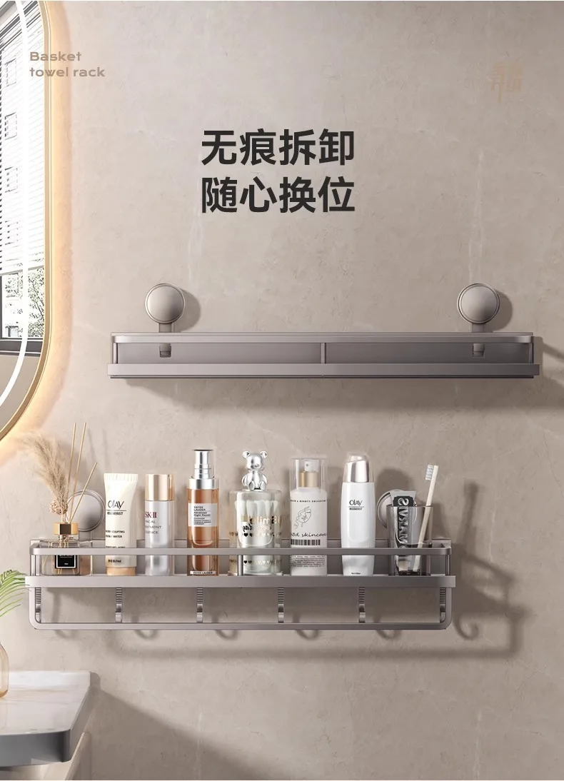 YM Wall Mounted Bathroom Suction Cup Shelf Multi-Purpose Rack Towel Holder for Washbasin Kitchen Storage Organizer